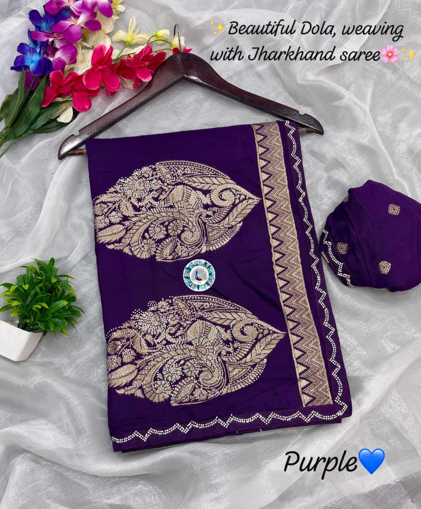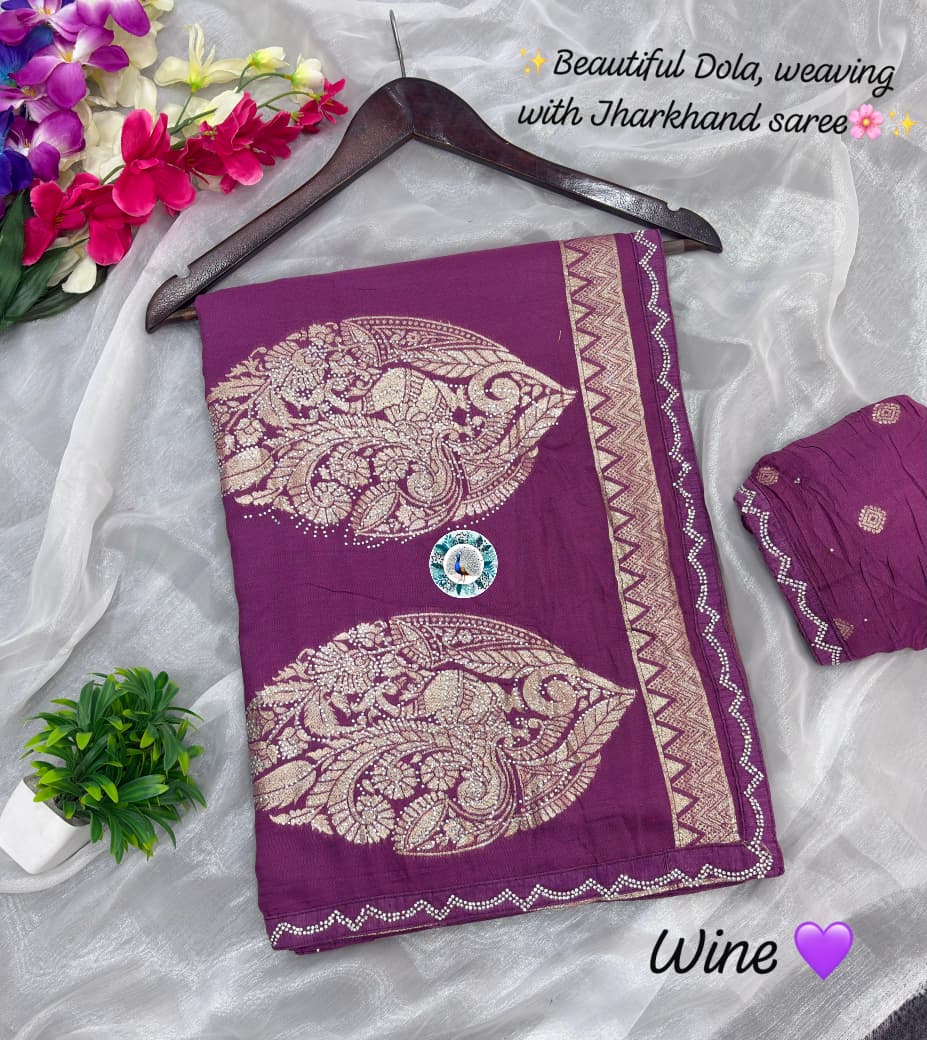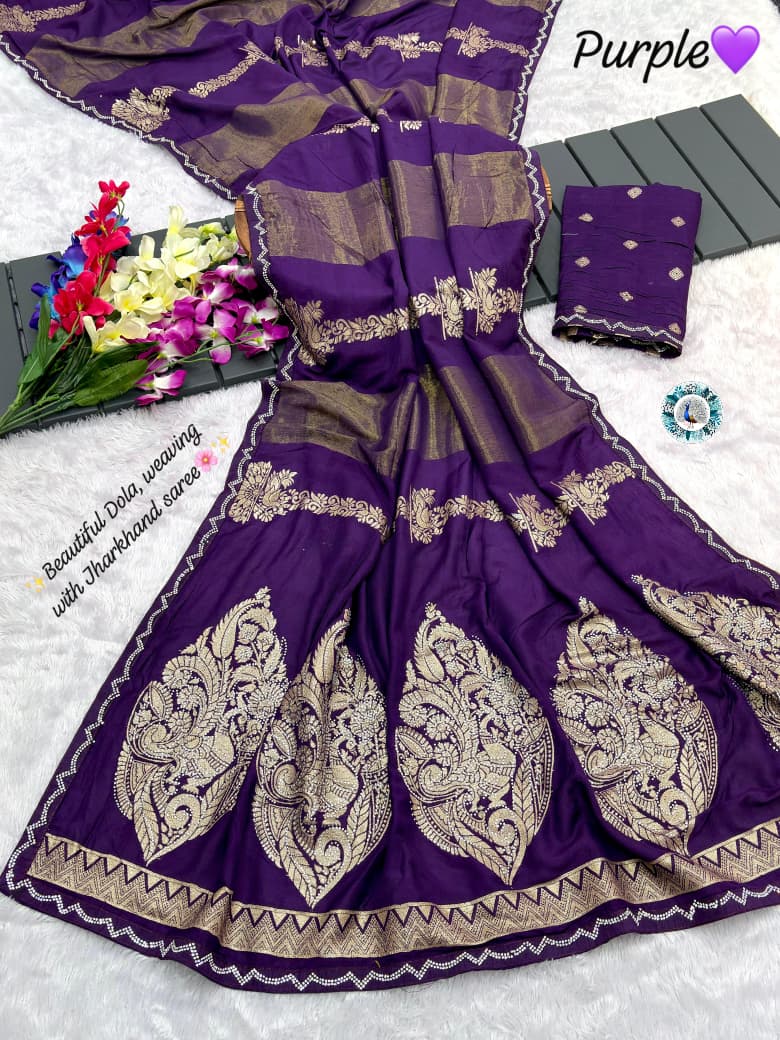 Fabric :- Pure Dola silks saree and orignal Jarkhan full saree less border work