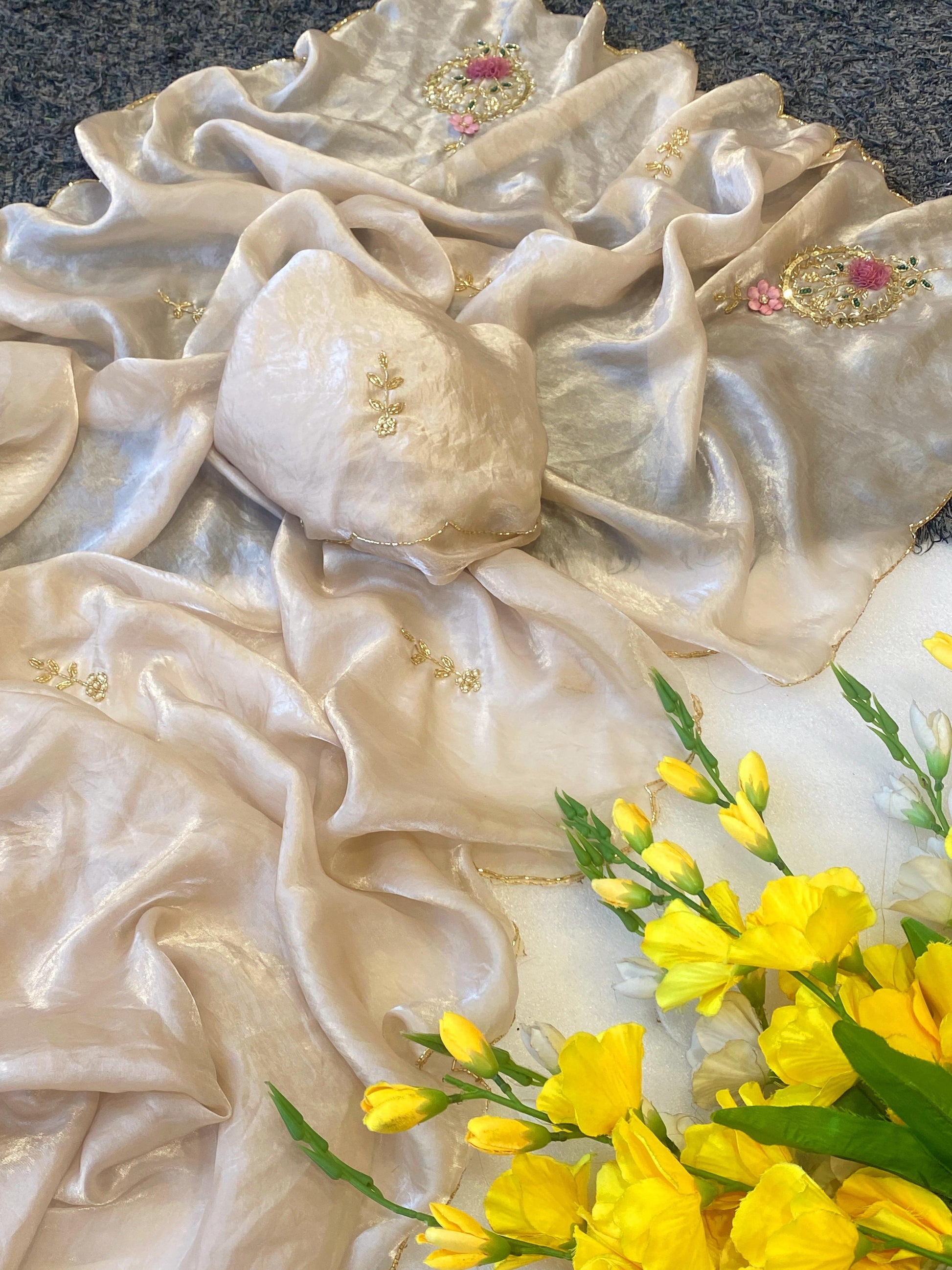 Soft Frendy SILK SAREE WITH DESIGNER KHATLI HANDWORK With additional Rose on Butta