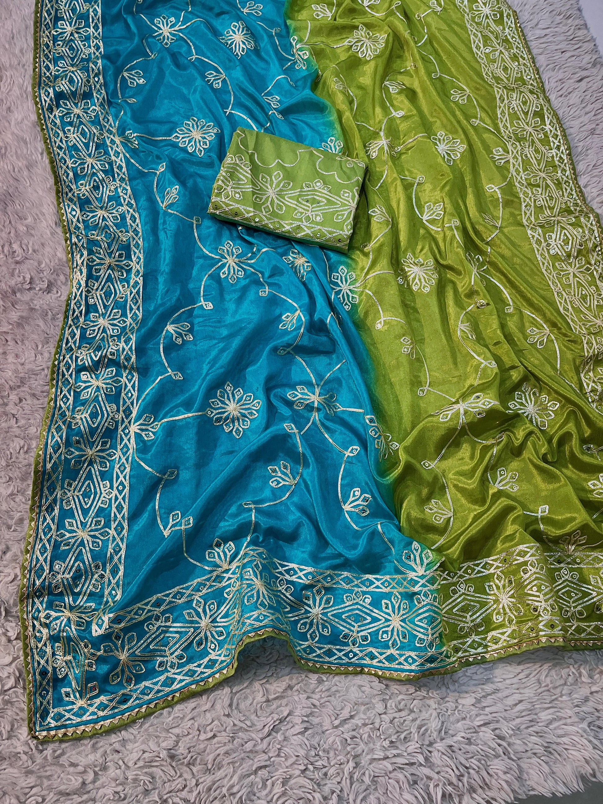 Fabric & work :- beautiful Chinon peding saree with rich look ribbon gotapatti zaal work with sequence work