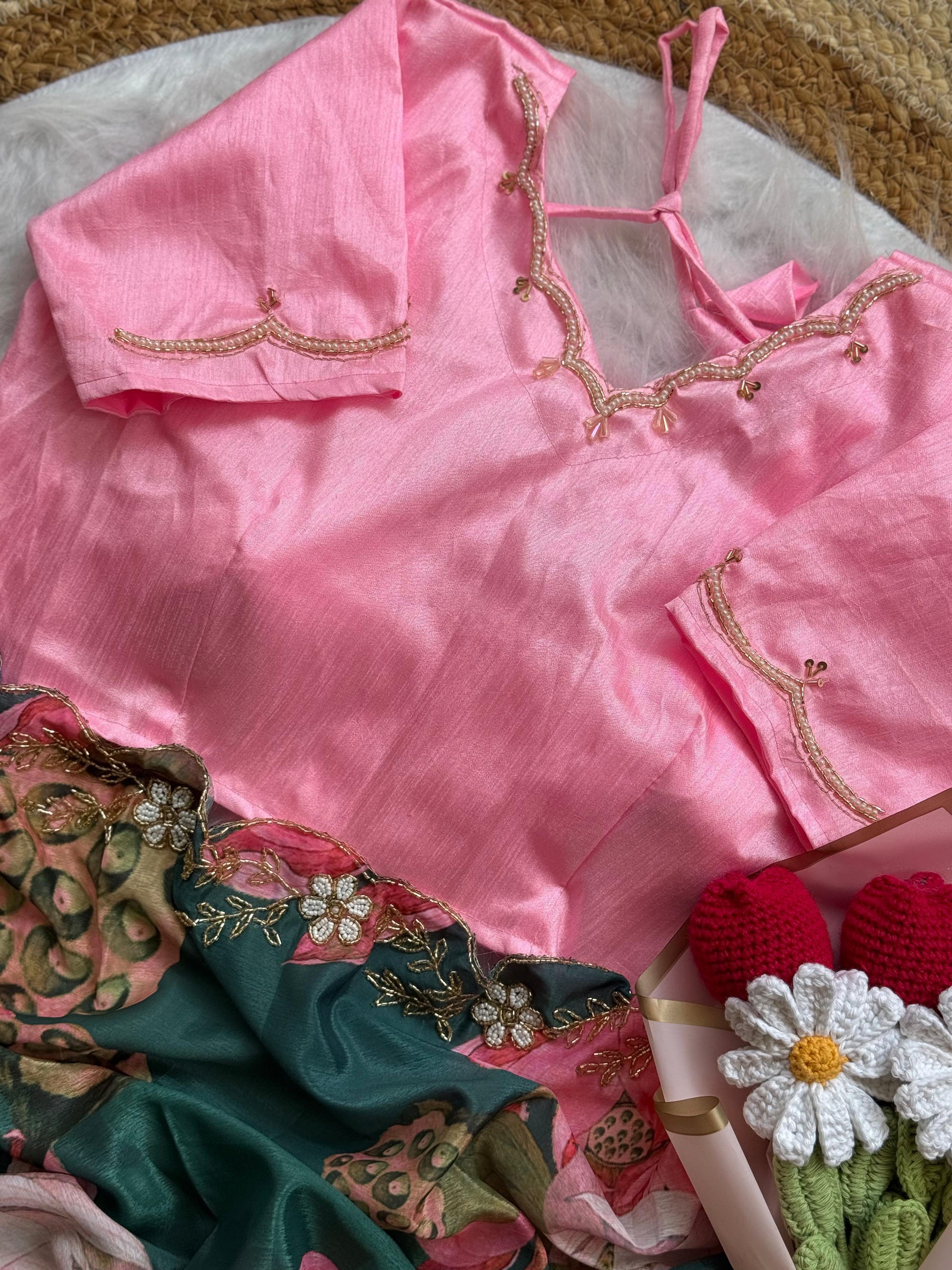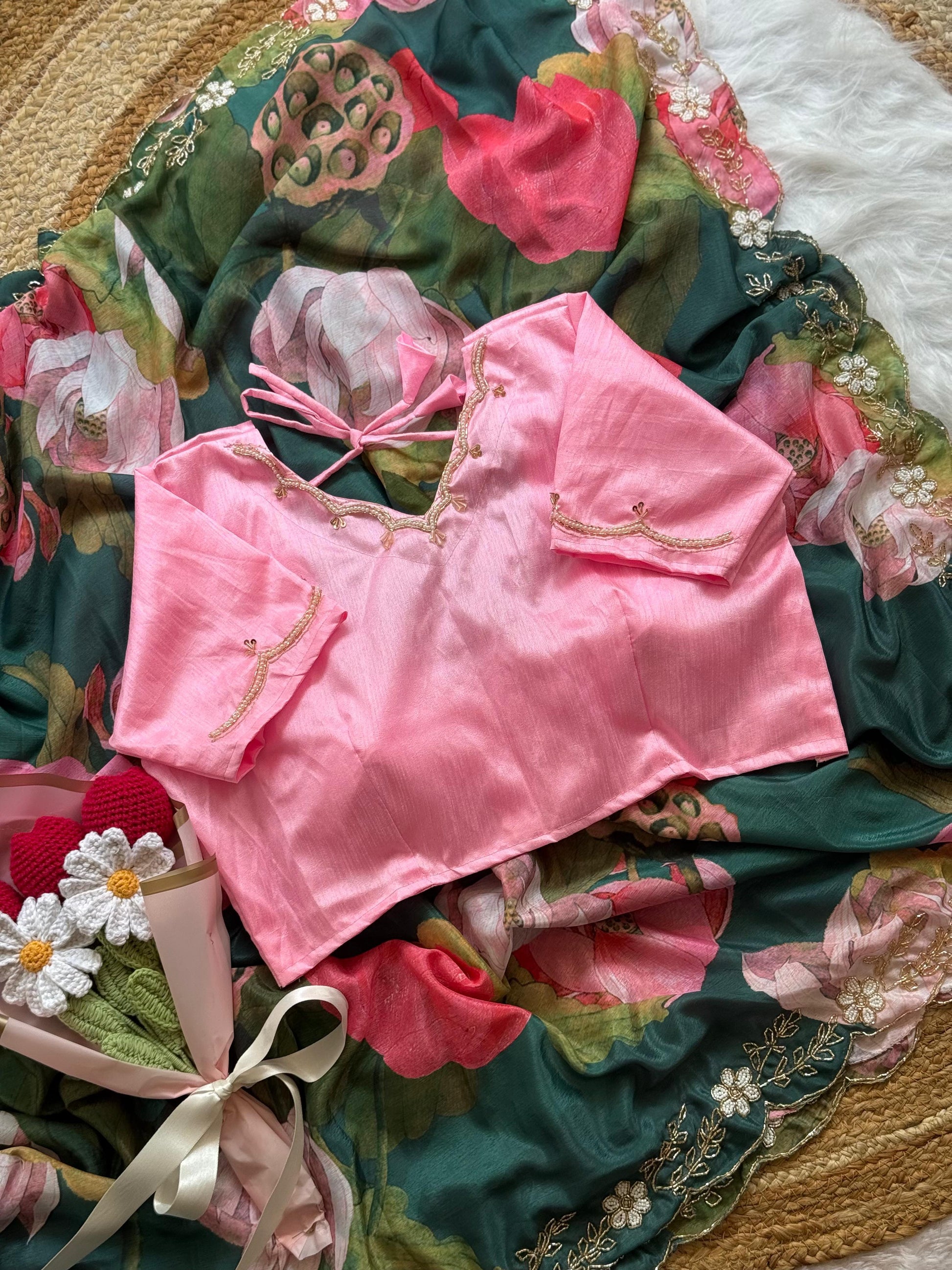 Silk Blouse Having Beautiful Hand Work On Front And Sleeves Design Blouse piece (Baby Pink)