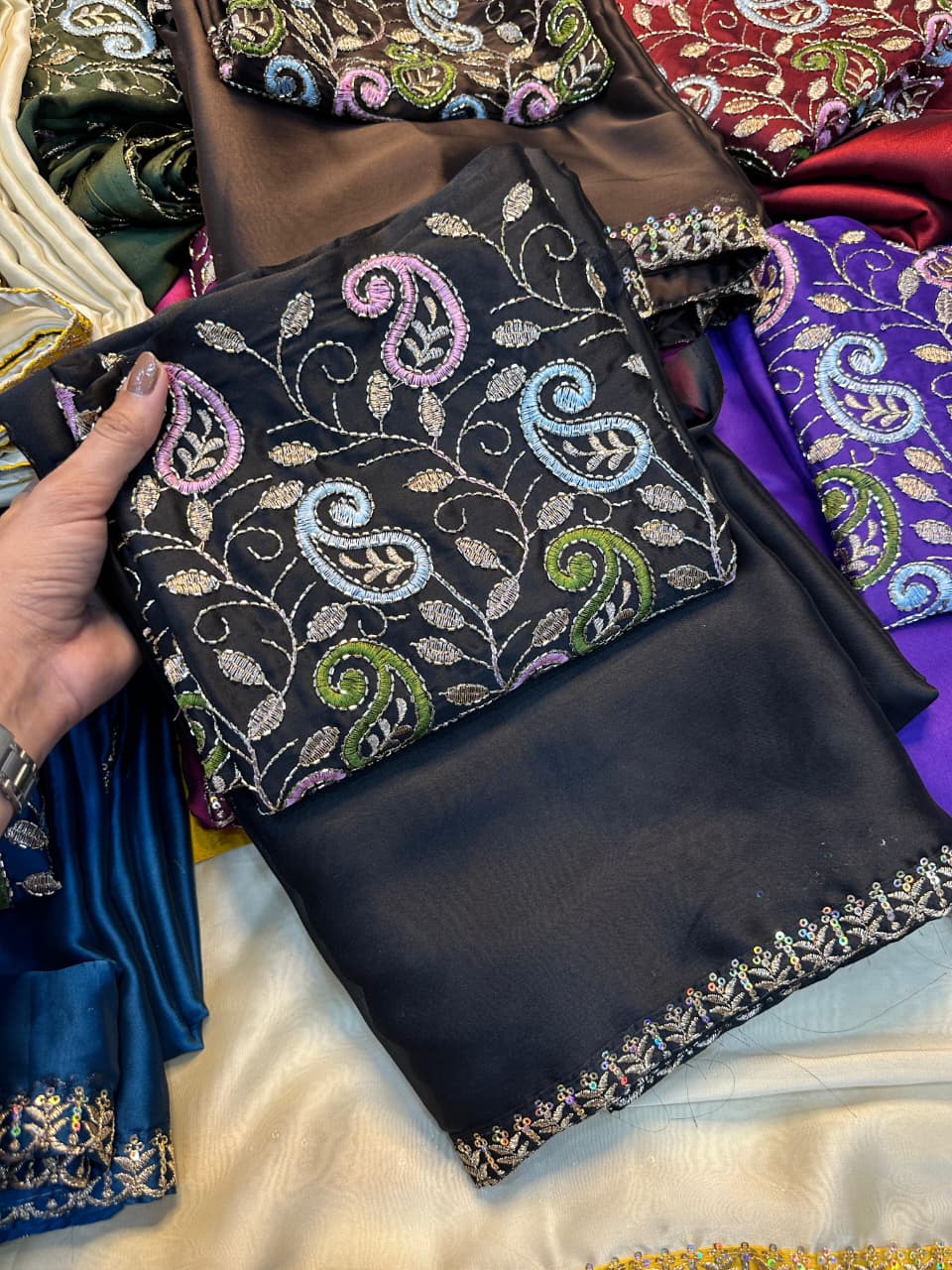 Soft Rangoli Silk Fabric With Embroidery Work and Sequinsbids Work Border With Heavy Embroidery Work and Sequins-bids Work Blouse